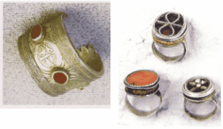 Жүзік — перстень украшается драгоценными и полудрагоценными камнями, разноцветными стеклами или элементами из самого же серебра, из которого делаются выпуклые орнаменты: "балдақ", "отау", "құстұмсық".