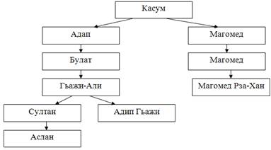 Таким образом, предание что основателем селения является Касум, подтверждается и эпиграфическим материалом. Также, установлено, что Касум жил в 6-х и XVIII века и, благодаря эпитафиям можно составить генеалогическое древо его рода.