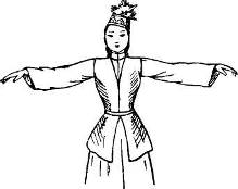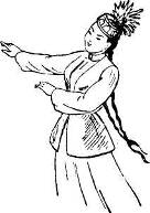 (головной убор девушки). Одну руку перевести в 3-ю позицию, другую руку, согнуть в локте, держать перед корпусом. Кисть направить тыльной частью к себе, ладони - вверх от себя.