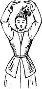 » (рога). Руки с округленными локтями поднять вверх, у девушек: ладони – вверх, пальцами одна к другой. У юношей кисти зажаты в кулак и направлены со стороны ладоней вперед; исполнитель как бы держит нагайку, лук, винтовку и т.д.