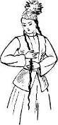 Исполнительница, слегка повернувшись правым плечом вперед и наклонив голову к правому плечу, проводит обеими руками по правой косе сверху вниз: кисть правой руки проводится ладонью поверх косы, кисть левой руки находится под косой, касаясь ее тыльной стороной. Руки, как бы пpиглаживая косу, опускаются вниз примерно до уровня талии. Затем кисть левой руки забрасывает низ косы на тыльную часть кисти правой руки, при этом кисть левой руки поворачивается тыльной стороной «к себе», ладонью «от себя». Забросив, косу на кисть правой, левая рука опускается вниз между кистью правой руки и корпусом,