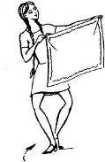 два-и — вытягивают ноги в коленях (тяжесть корпуса на правой ноге) и приподнимают платки вперед, выпрямляя руки в локтях (рис 8).