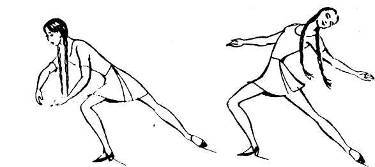 раз-и— шагнуть правой ногой назад— влево, сгибая ноги в коленях; два-и — шагнуть левой ногой влево, поднимаясь на полупальцы обеих ног.