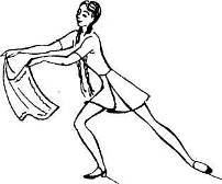 Т а к т ы 8—11: «переменным ходом» (движение 1) медленно продвигаются вперед, соединив руки мизинцами друг с другом. На два такта поднимают платки вверх, закрывая лица, на два такта опускают вниз (схема 12; рис. 7).